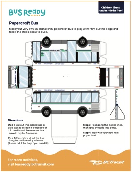 Please find below some downloadable templates for paper craft kits. They are fun and interactive activities designed to help children learn about transit and spark their creativity!